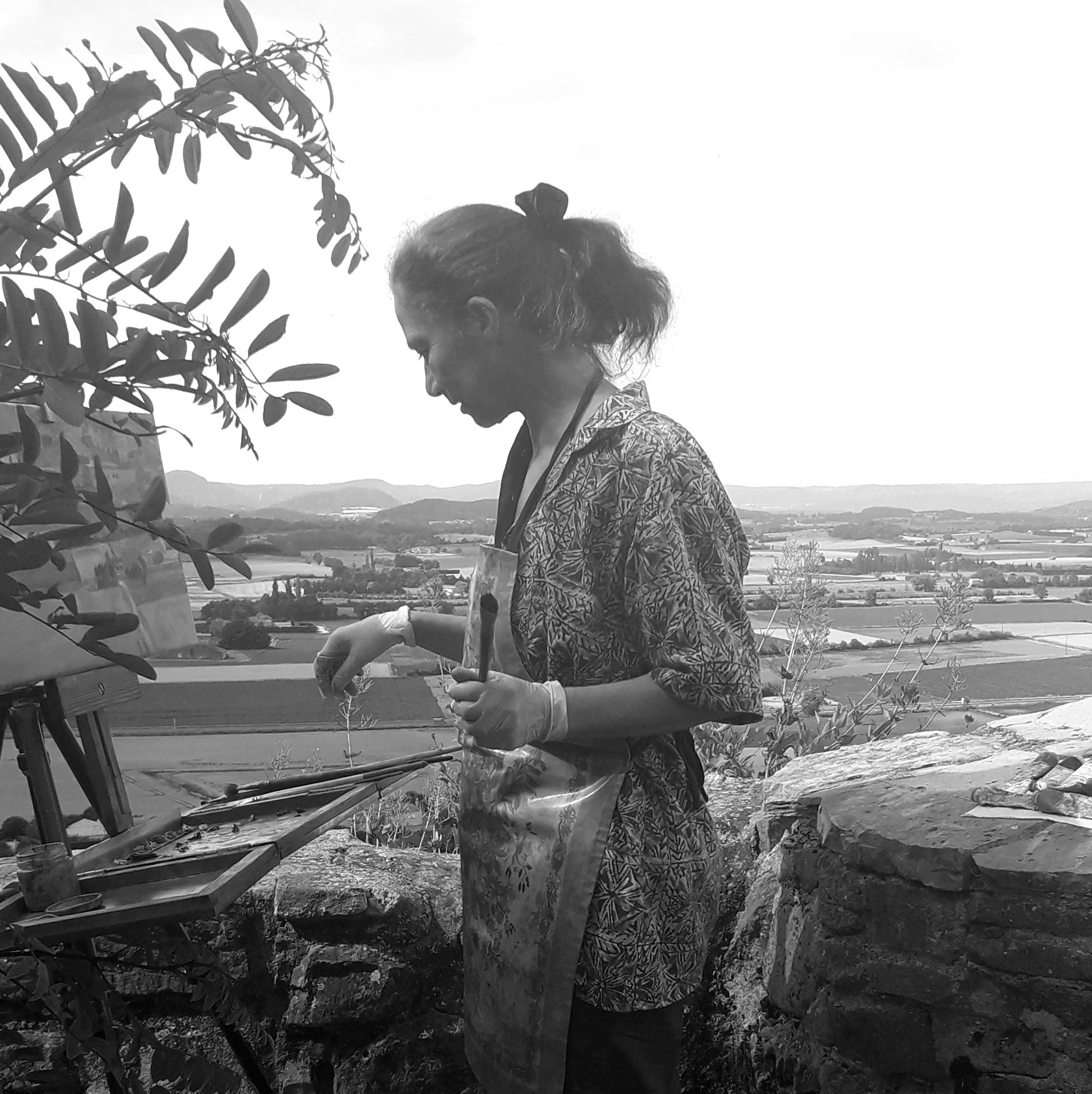 Le paysage de l’Ardèche, parfois rude et volcanique, révèle une force subtile : les arbres y puisent la résilience pour grandir et s’épanouir. Lorsqu’elle peint, elle transpose cette énergie avec concentration et intensité, en harmonie avec la nature.