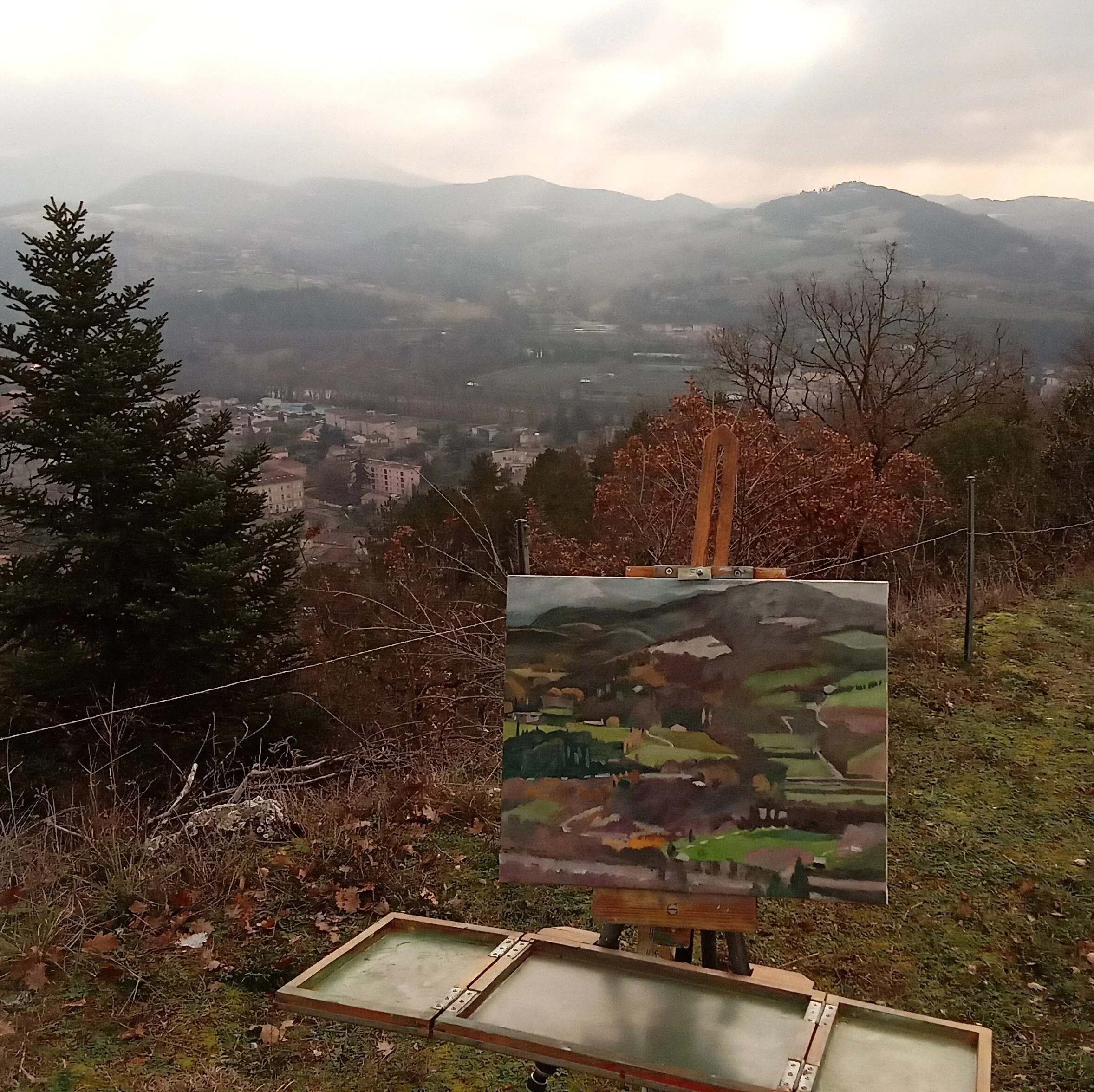 En revenant au même endroit à différents moments, elle révèle des paysages en constante évolution. Villages, collines et arbres se transforment selon la lumière et le temps, chaque tableau offrant une interprétation unique, riche visuellement et émotionnellement.